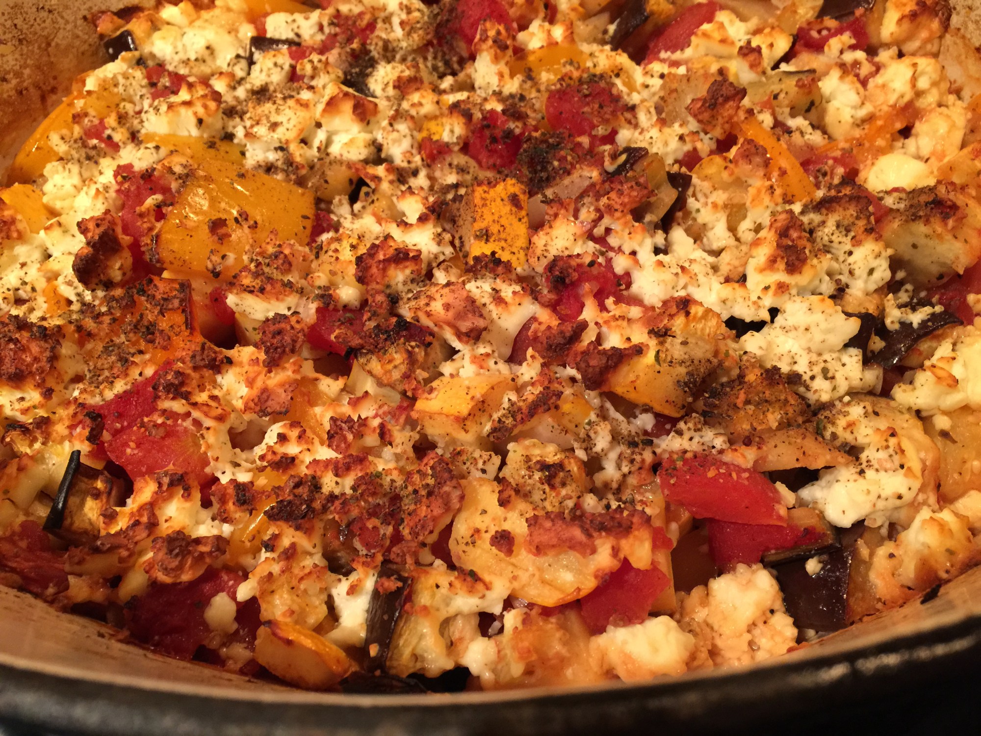 Cuire ensuite environ 45-50 minutes au four à 400F. Au bout d’une demie heure, saupoudrer l’ensemble des légumes de fêta végétale. Déguster avec des pommes de terre sautées ou du pain à l’ail.