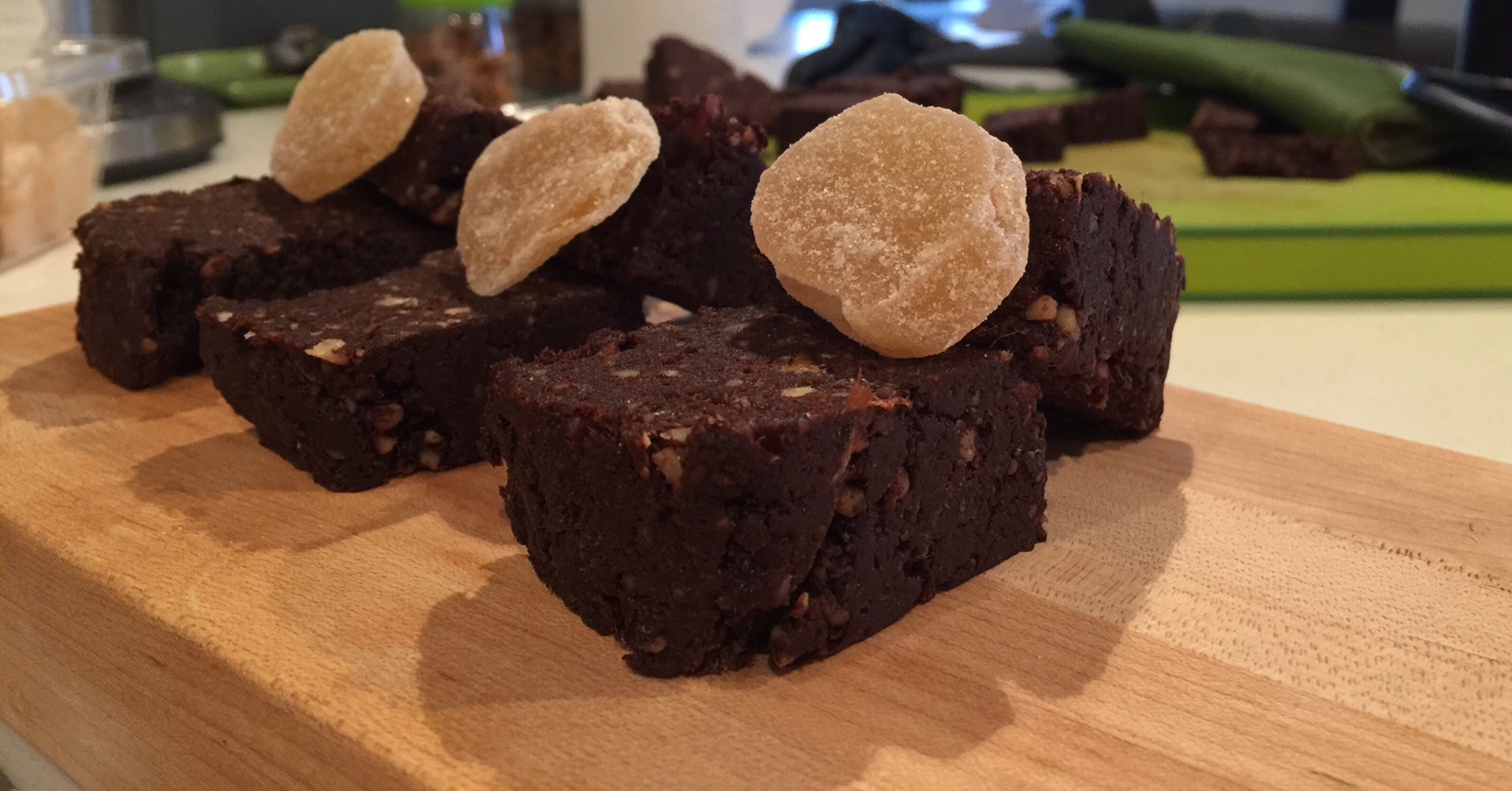 Pour ajouter une ganache piquante 1/2 tasse cacao 1/2 tasse sirop d’érable 1/4 tasse huile de noix de coco fondue 1/2 c. à thé cannelle 1/4 c. à thé gingembre moulue Combiner tous les ingrédients ensemble et fouettez jusqu’à obtention d’une belle ganache lustrée. Badigeonner la ganache sur les brownies et mettre au frigo 30 minutes.
