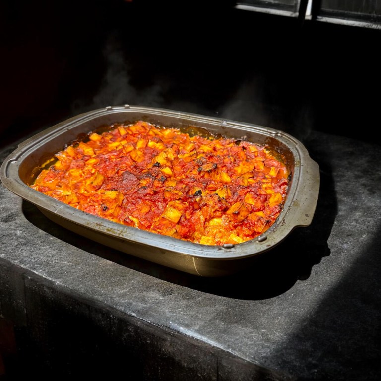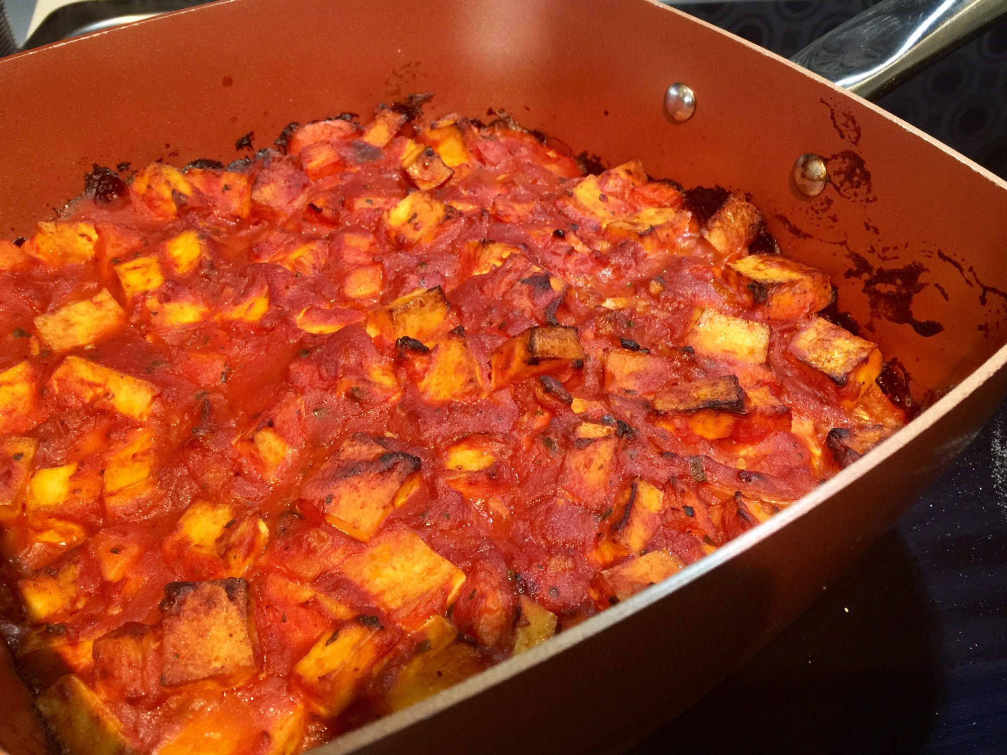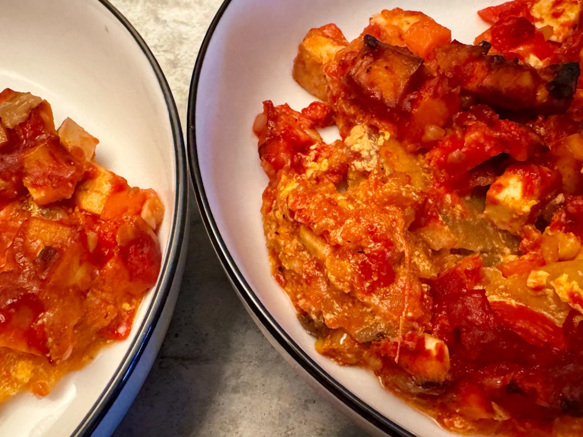 Couvrir la moussaka avec la sauce tomate/tofu réservée. Enfourner dans le four préchauffé à environ 350F pendant 60 minutes ou jusqu’à ce que les pommes de terre soient tendres.