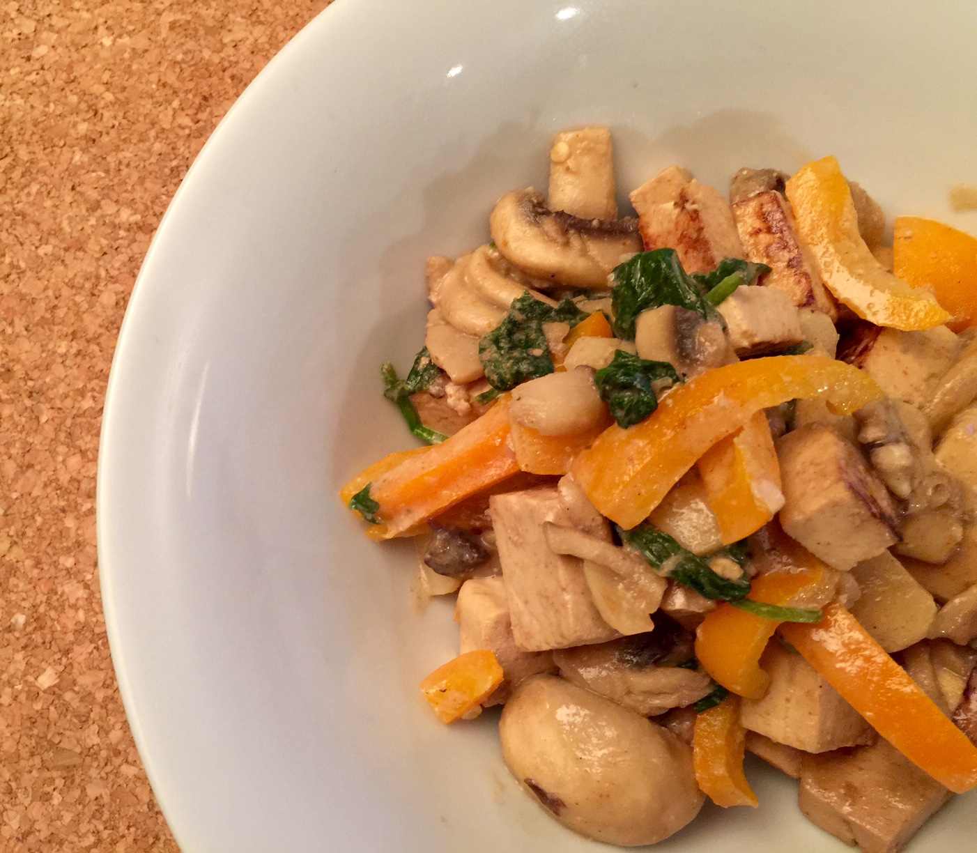 Ajouter le tofu et la sauce au beurre d’amande. Réchauffer de 1 à 2 minutes en remuant.
