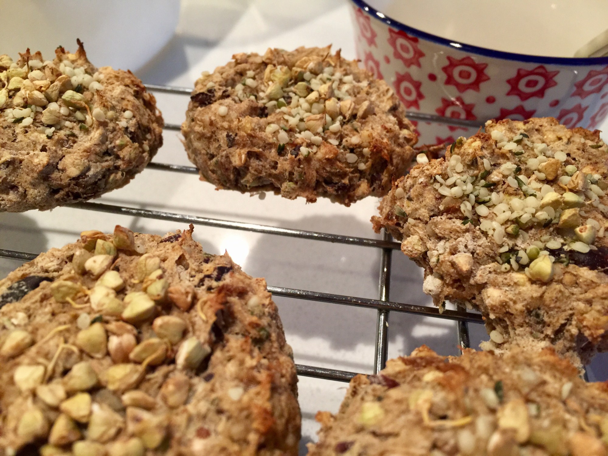 Ajoutez du sarrasin germé et du chanvre écalé sur le dessus des galettes.