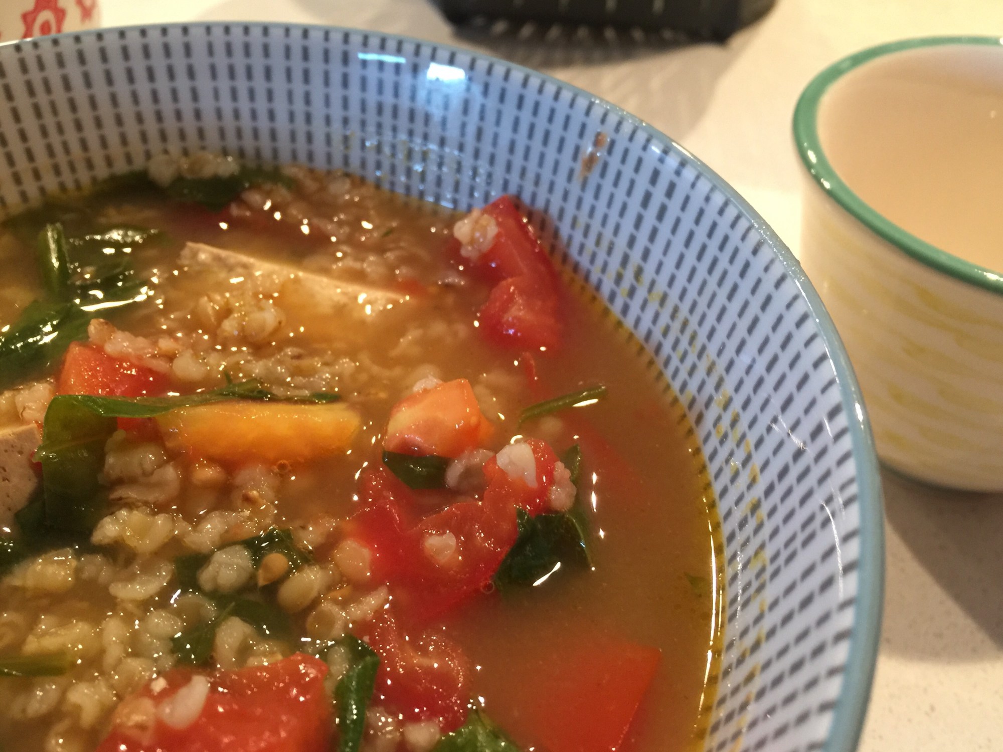 Mettre les épinards, les tomates et le tofu dans la soupe.