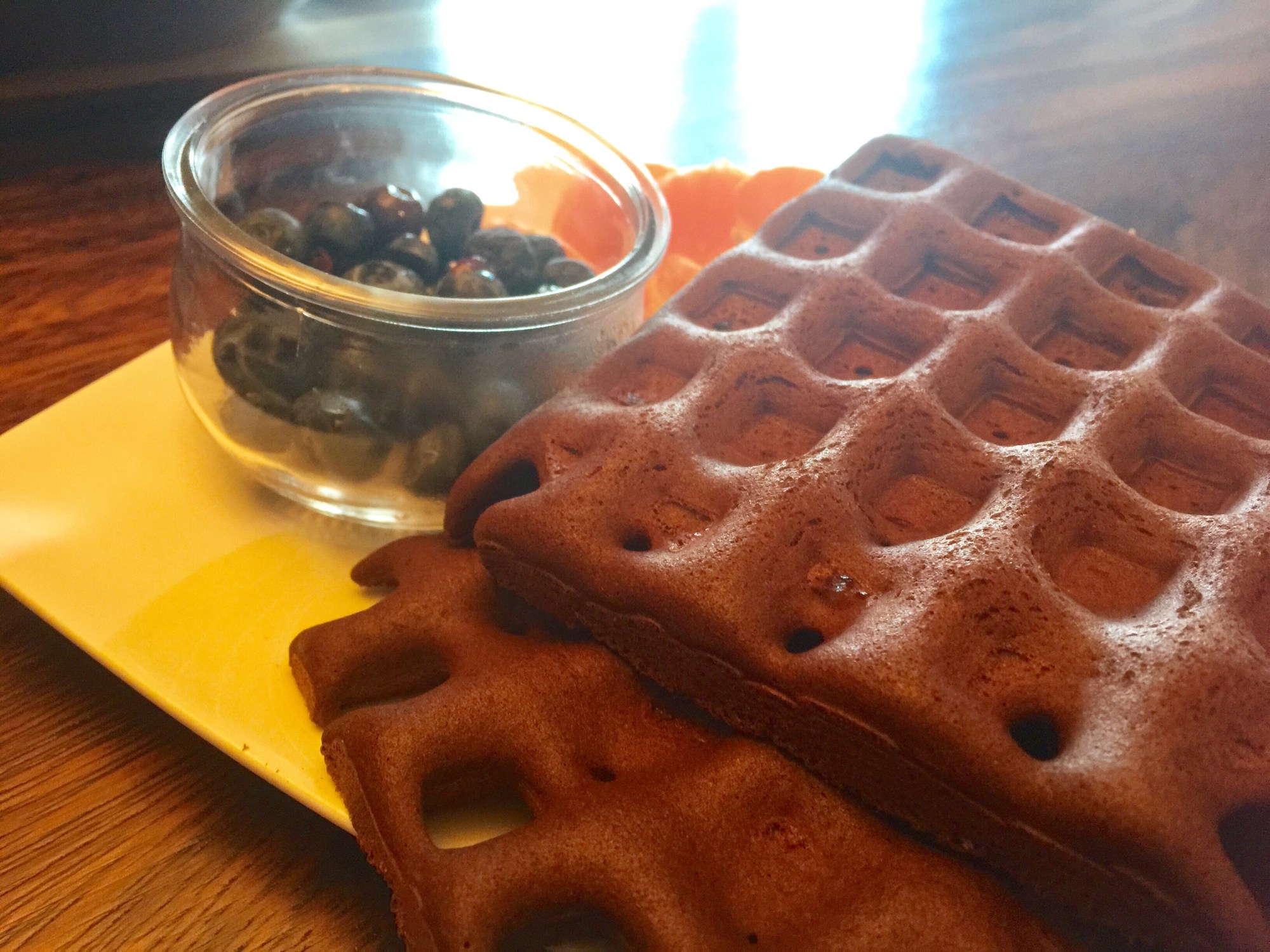 Dans un bol, mélanger tous les ingrédients secs, faire un puits et ajouter l’eau et la vanille. Mélanger au batteur à main et cuire dans un gaufrier selon les instructions du fabricant.