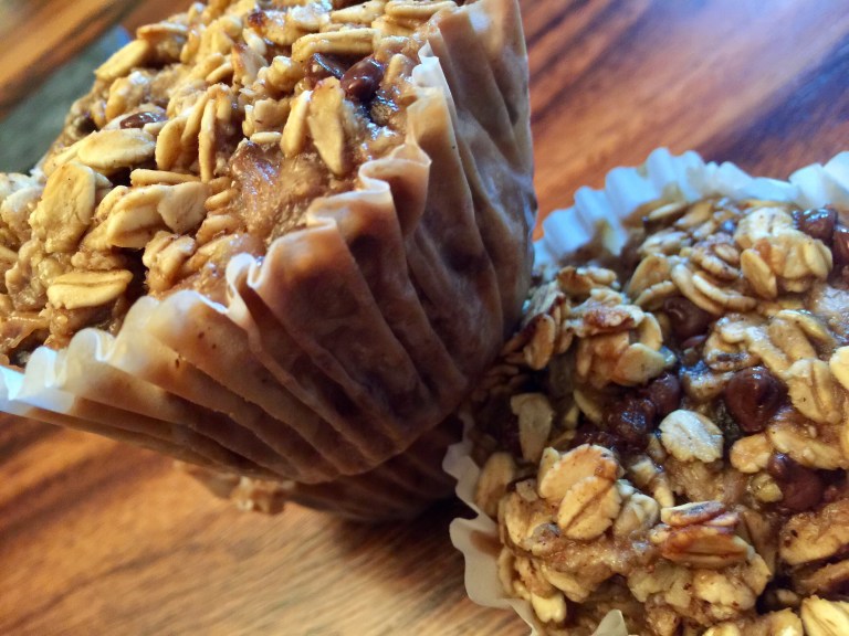 Vaporiser 2 moules à muffins avec une huile de cuisson antiadhésive ou les tapisser avec des doublures en papier.