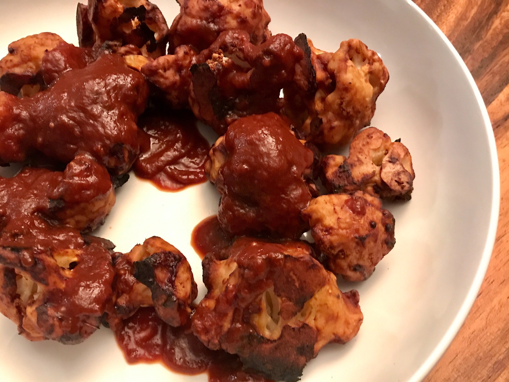 Pendant que le chou-fleur est au four, préparez la sauce BBQ. Placer tous les ingrédients pour la sauce dans un chaudron de taille moyenne, puis faire mijoter à feu moyen. Réduire à feu doux et laisser mijoter doucement pendant une quinzaine de minutes afin que les saveurs se marient. Goûter la sauce et ajuster l’assaisonnement au besoin en ajoutant plus de sel ou plus de poudre de chili si vous souhaitez une sauce plus épicée. Réserver.