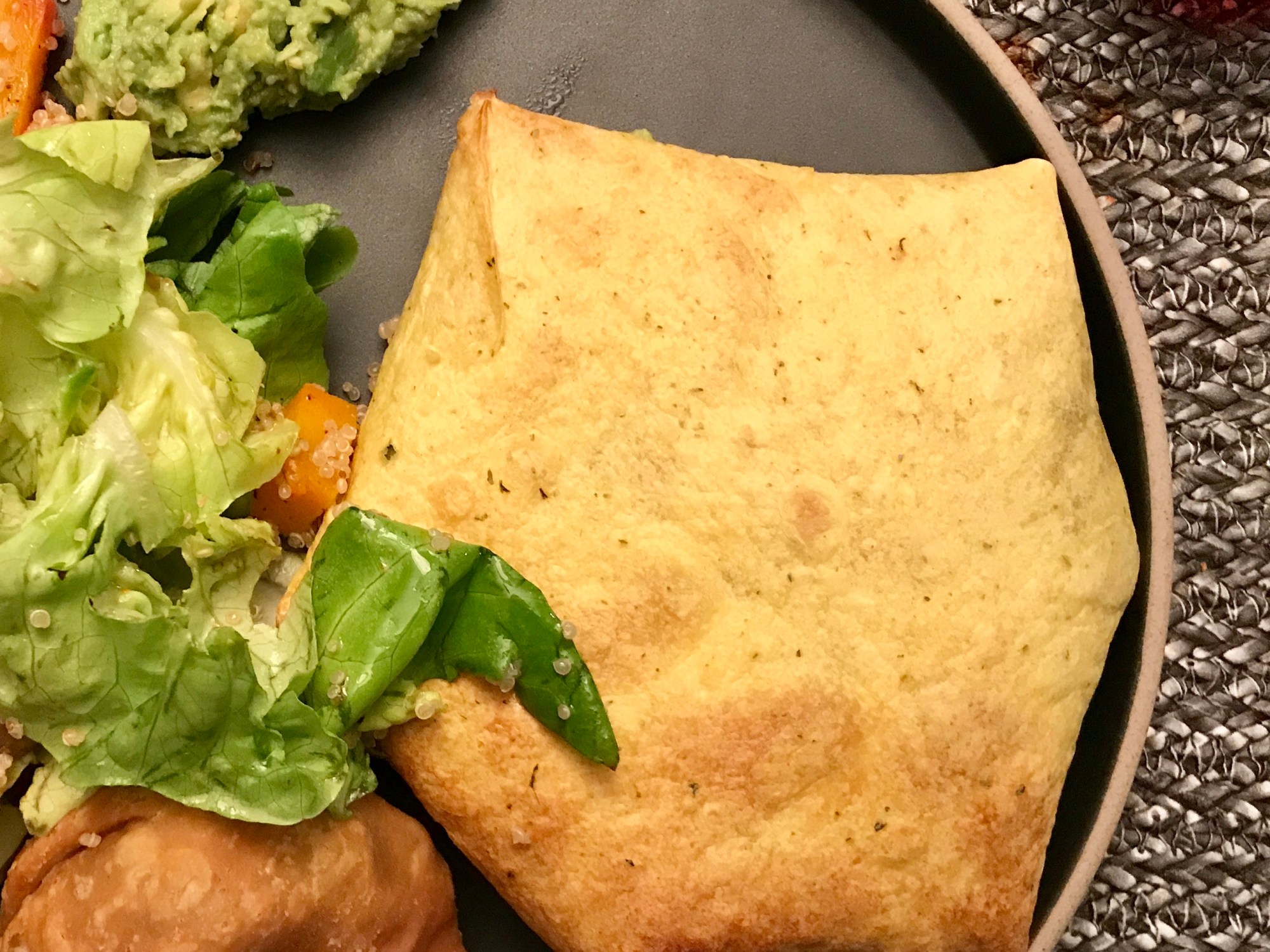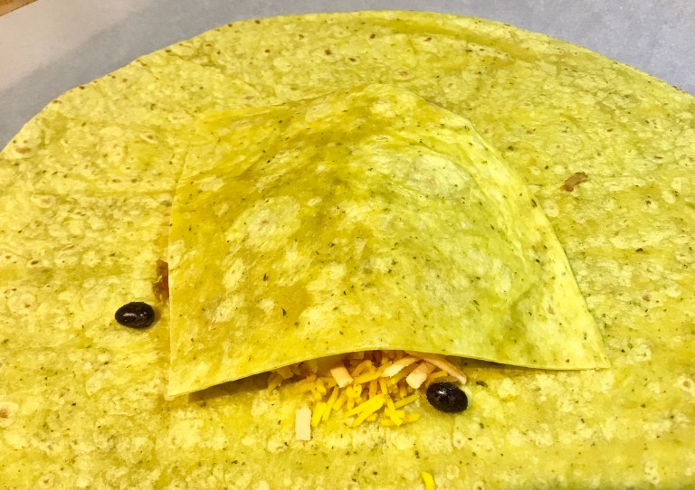 Plier les bords de la tortilla au milieu pour former un colis en forme de samosa.