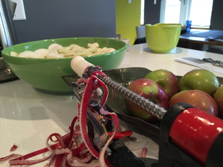 Commencez par faire une compote de pommes. Lavez vos pommes, épluchez-les et coupez-les en quartiers. Placez les morceaux de pomme dans le bol. Si vous souhaitez parfumer votre compote, ajoutez de l’extrait de vanille.