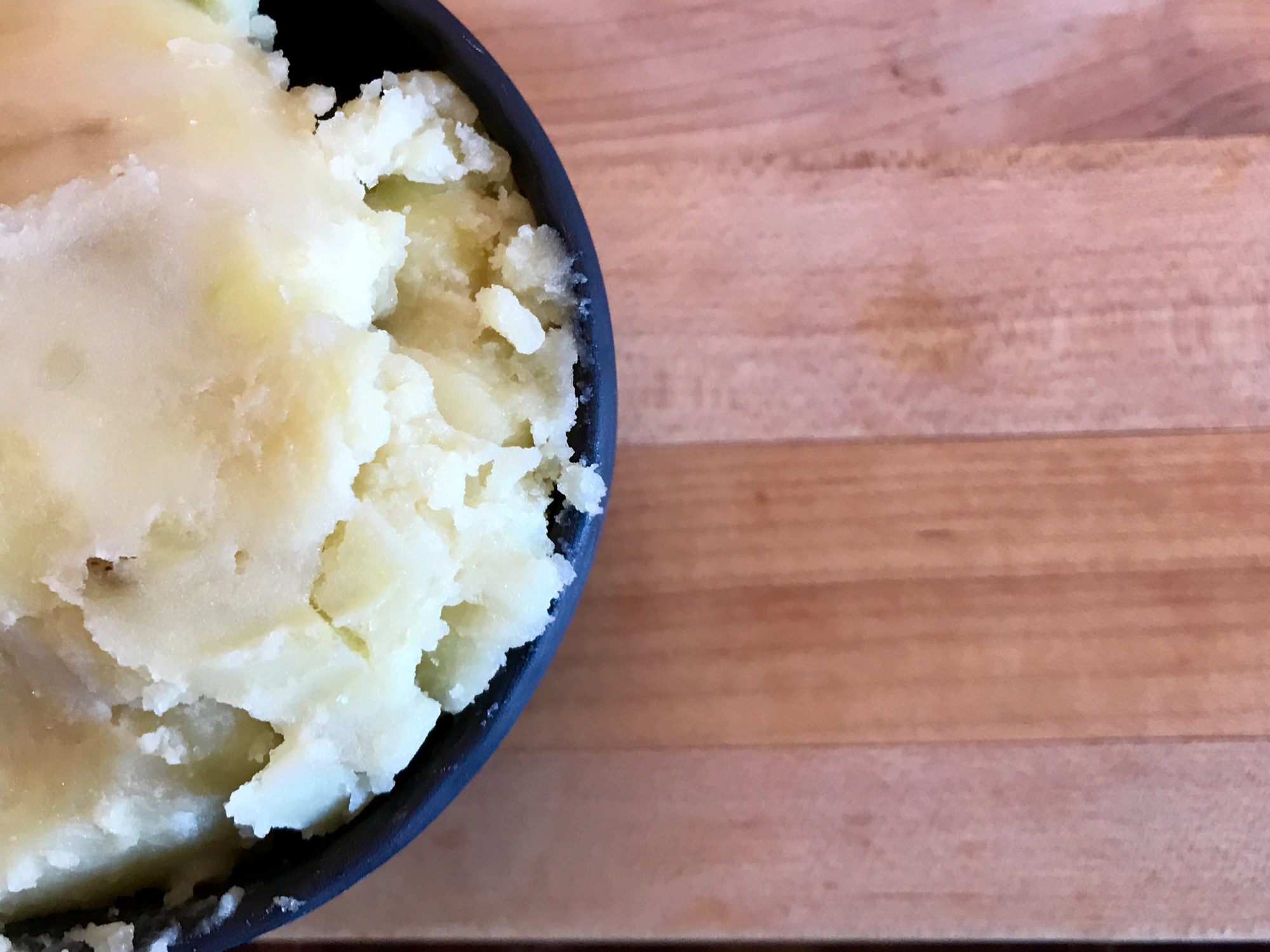 Mettre les pommes de terre, le sel et le lait végétal dans le bol. Cuire 35 minutes/95C/inversé/vitesse 1. Vérifier la cuisson. Prolonger de quelques minutes si nécessaire.