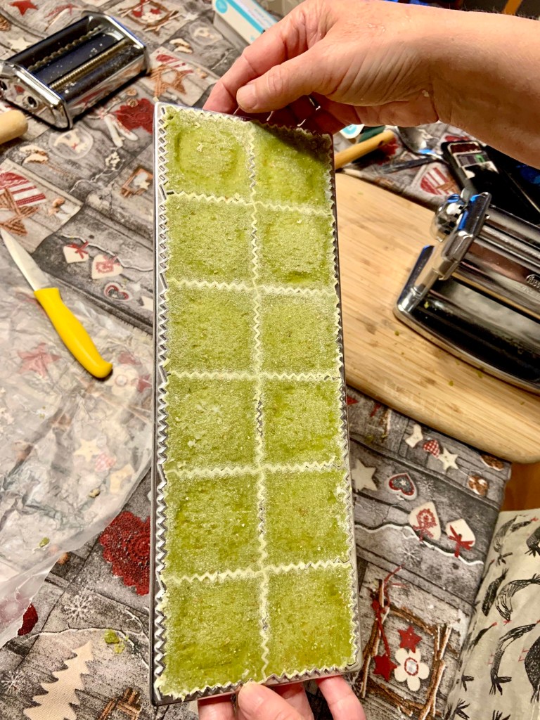 Farcir la pâte avec la farce. Utiliser un emporte-pièce ou un moule à ravioli.