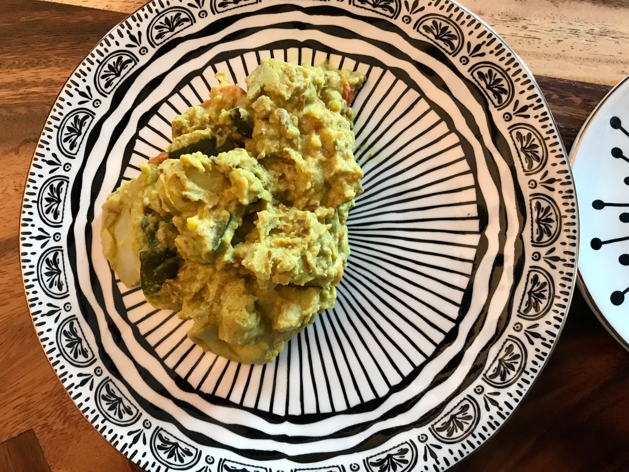 Ajouter le chou-fleur, les courgettes, le poivron, et les lentilles. Cuire 8 minutes / 100 / vitesse 1.
