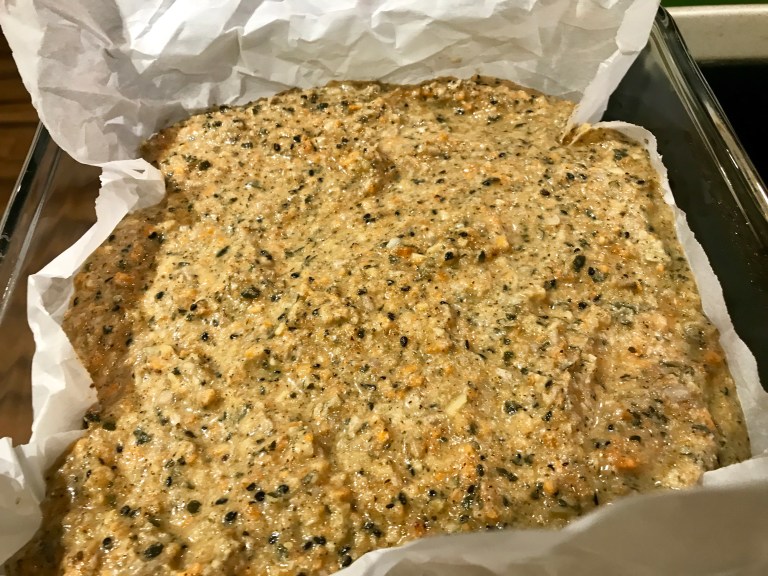 Dans un gros bol, mettre les graines et les légumes broyés ainsi que tout le reste des ingrédients. Bien mélanger.