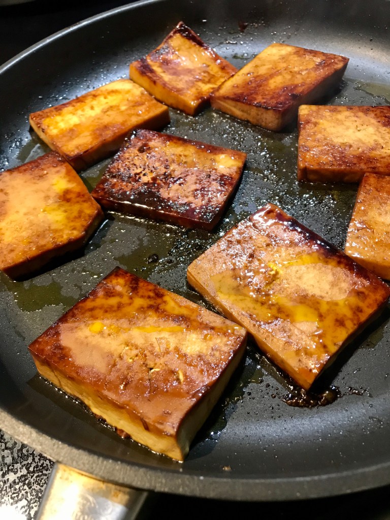 Ajouter les tranches de tofu et bien faire griller de chaque côté jusqu’à ce que ce soit bien doré et croustillant.