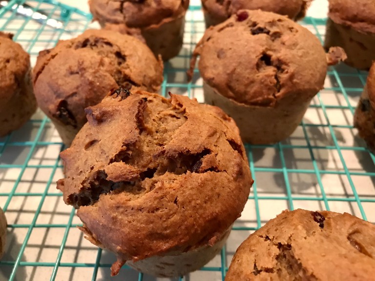 Remplir généreusement les cavités de la préparation et enfourner 25 min ou jusqu’à cuisson complète. Sortir du four, attendre 5 minutes et démouler les muffins. Faire refroidir sur une grille.