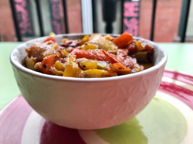 500 g. de poivrons de différentes couleurs, coupés en lanières