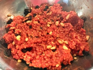 Mettre 10 g d’huile d’olive, les graines de fenouil, les raisins secs et les pignons de pin dans le bol, puis faire revenir 10 mini Varoma/couteaux inversés/mijotage, sans le gobelet doseur. Transvider avec la préparation à la tomate et mélanger à l’aide de la spatule.