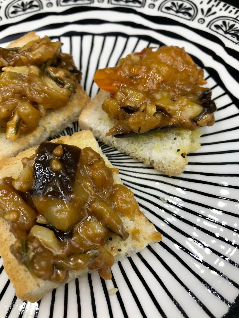 BOUCHÉES D’AUBERGINES ET DE TOMATES CONFITES