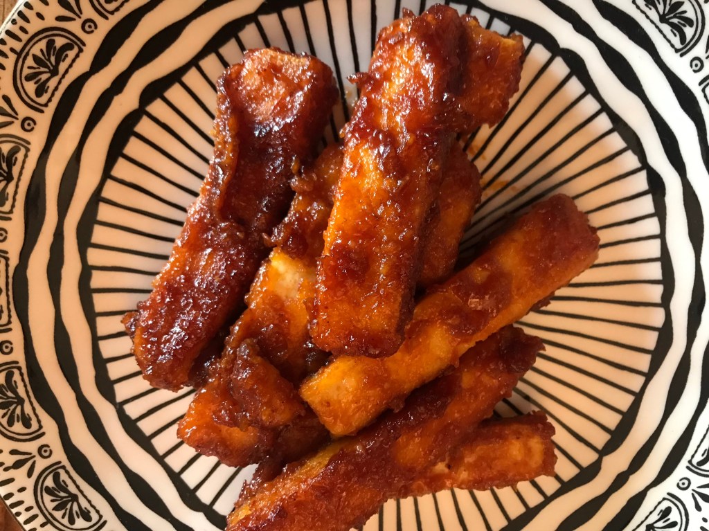 Trancher le tofu en bâtonnets. Réserver.