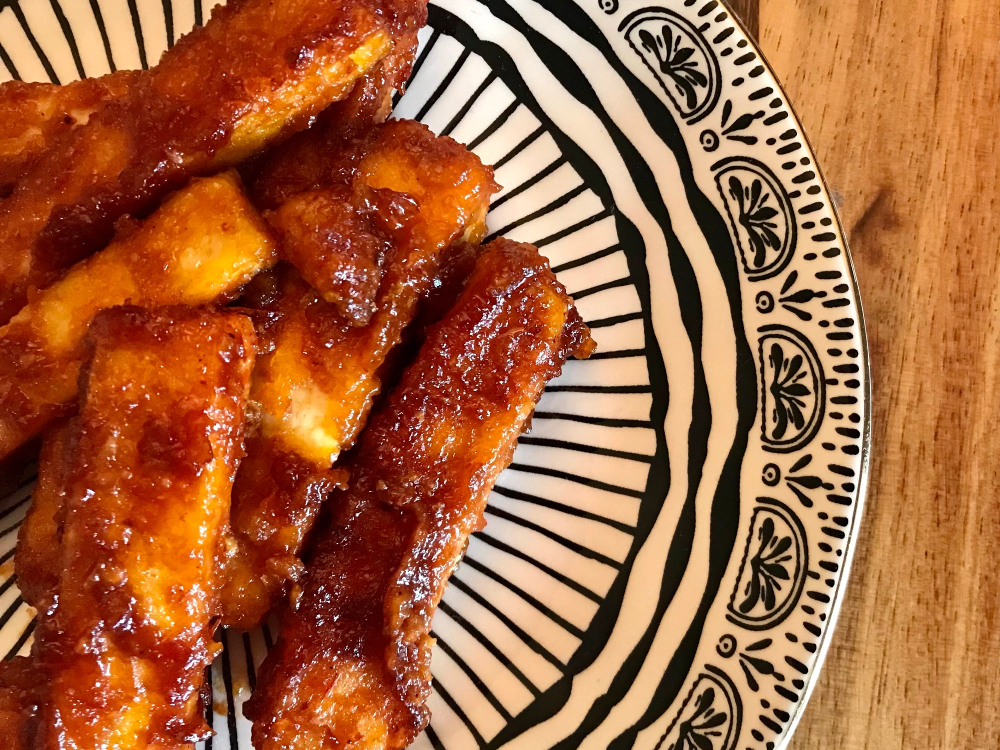 Dans une poêle antiadhésive, faire chauffer l’huile à feu moyen. Ajouter le tofu et faire griller environ 10 minutes, en retournant à mi-cuisson. Ajouter de l’huile au besoin. Lorsque le tofu est bien grillé, ajouter la sauce. Mélanger délicatement et bien enrober de sauce les bâtonnets de tofu.
