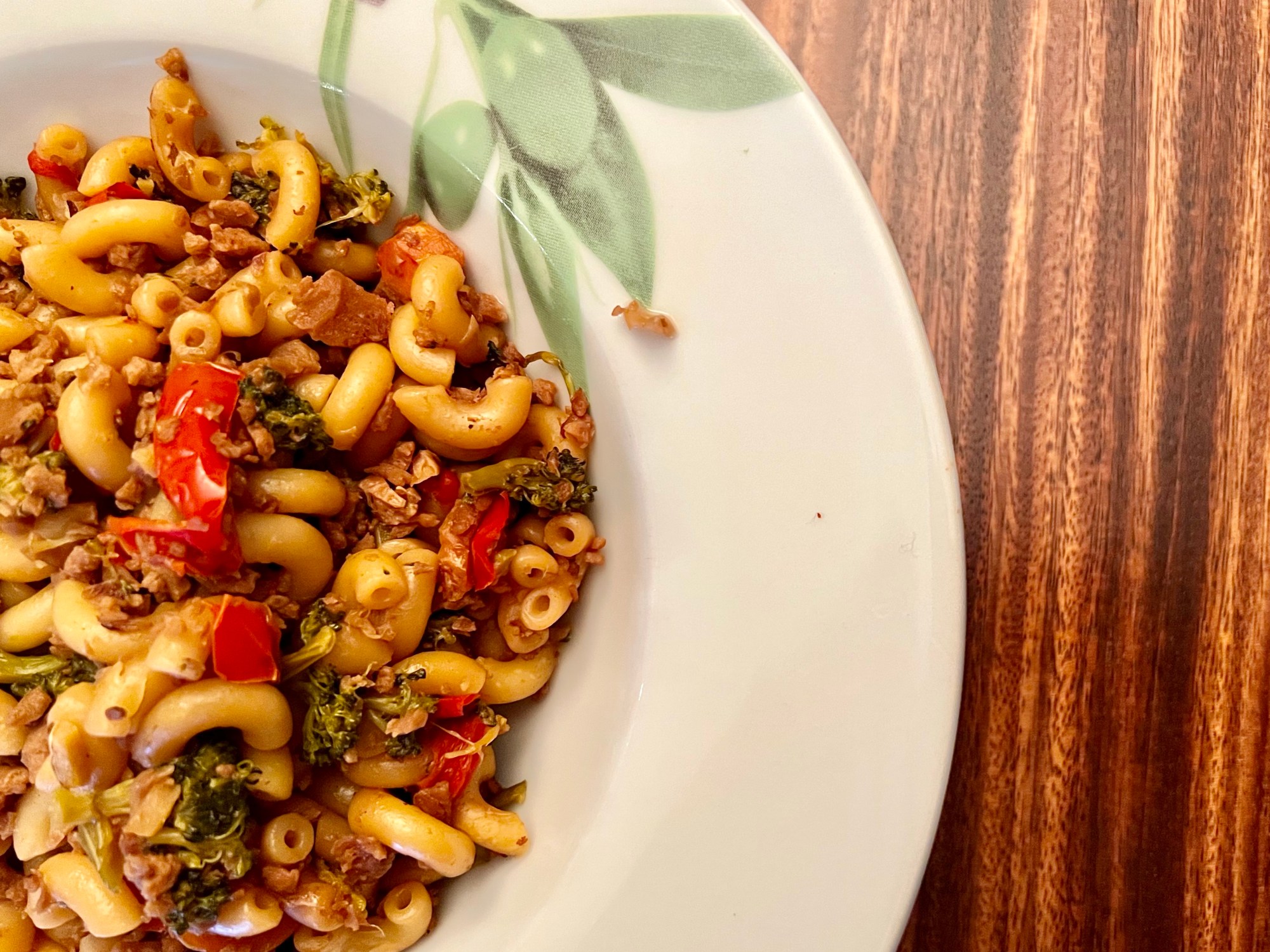 Verser la préparation sur les pâtes. Mélanger et servir.
