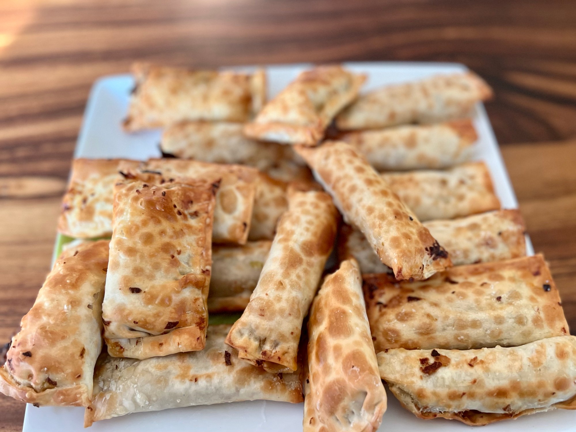 Badigeonner les nems d’un peu d’huile d’olives et mettre au four à 400F pendant environ 35 minutes, jusqu’à ce qu’ils soient bien dorés. À L’AIR FRYER: Cuire à 390F, environ 8 minutes de chaque coté.