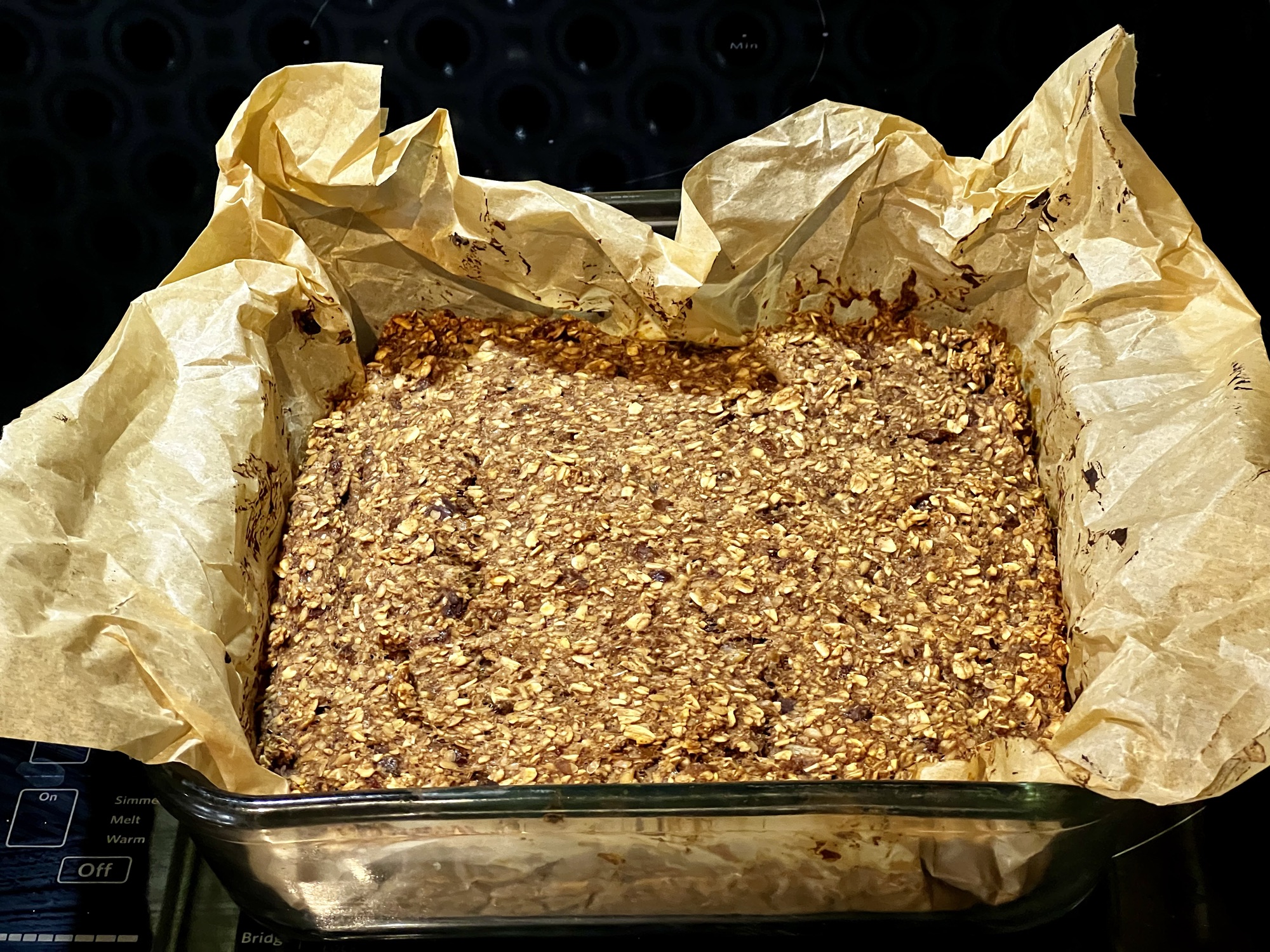 Versez le mélange dans un moule carré (8″X 8″) ou rectangle (10″ X 6″) d’environ 1″ d’épaisseur.