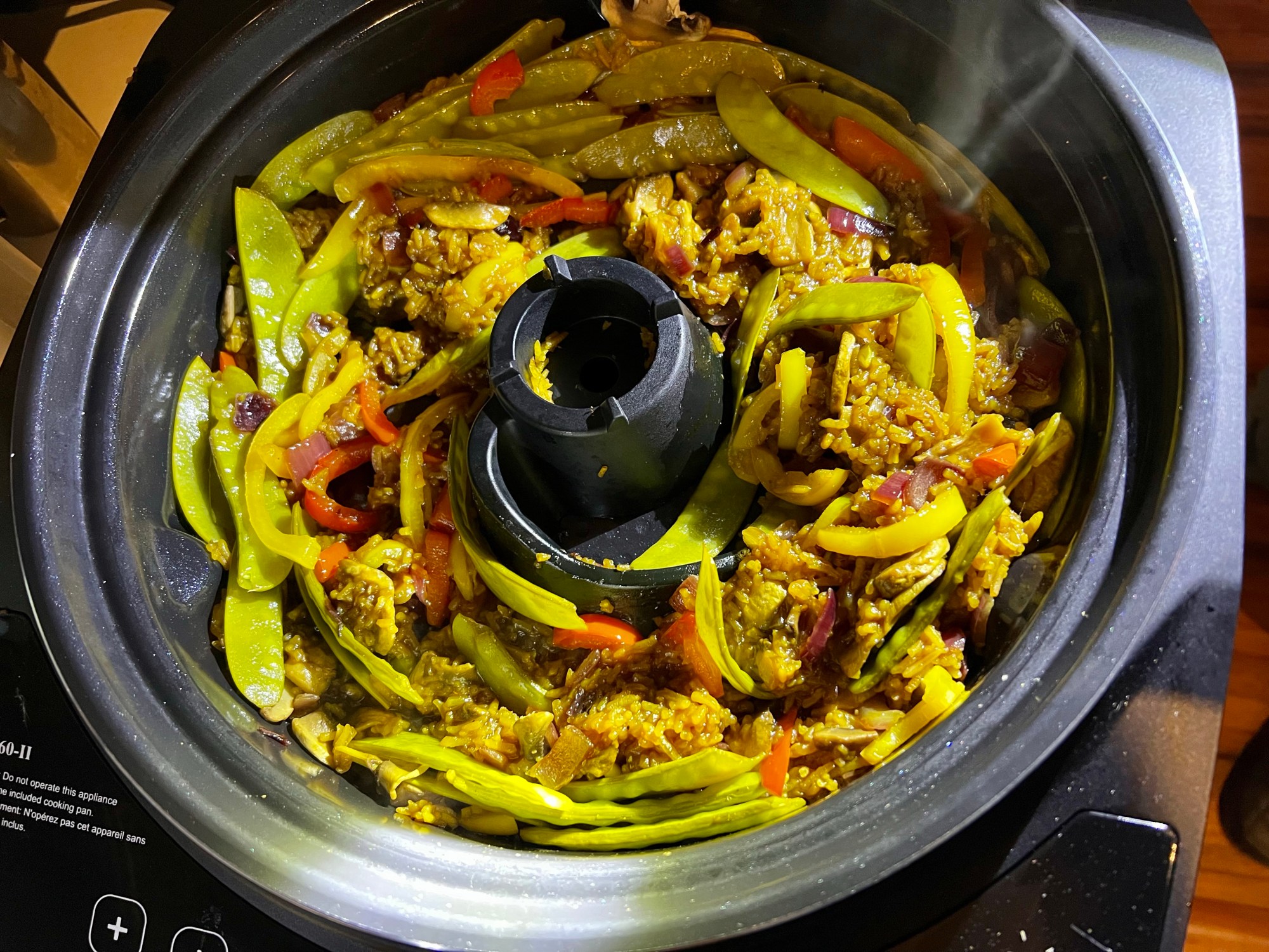 Dans le AirGo, programmer la fonction stir fry / 420° / 10 minutes.