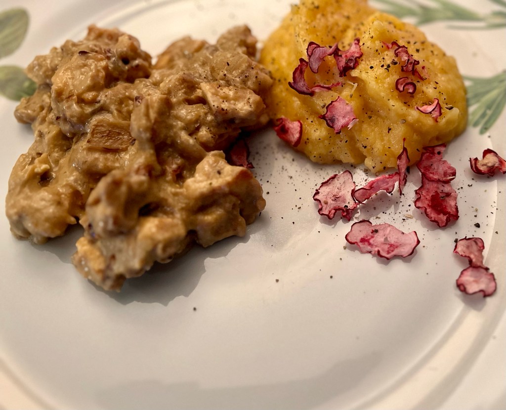 Accompagner d’une bonne purée de légumes racines.