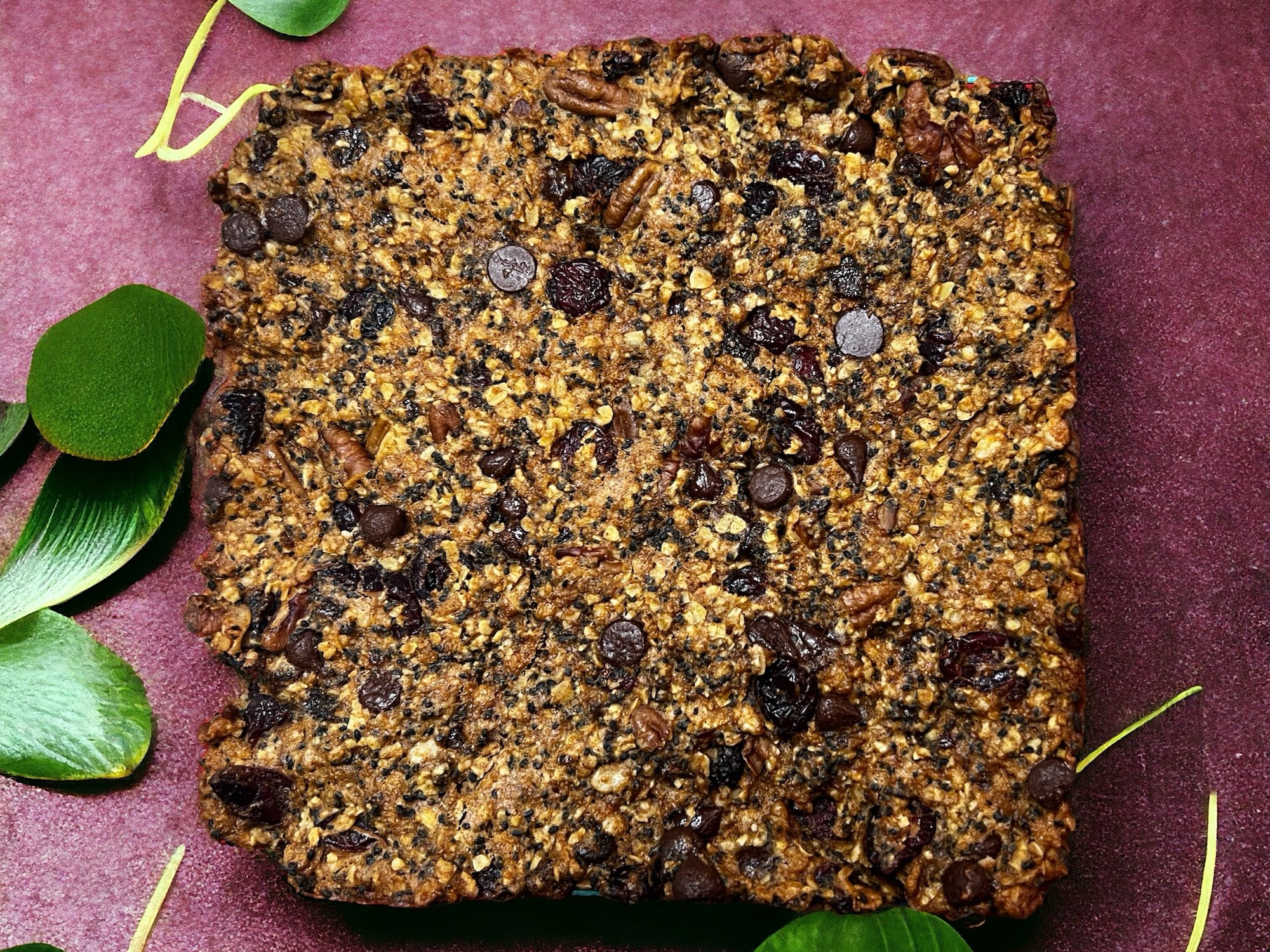 Mettre au four 30 minutes. Avant de déguster ou de couper les barres, attendre qu’elles soient refroidies.