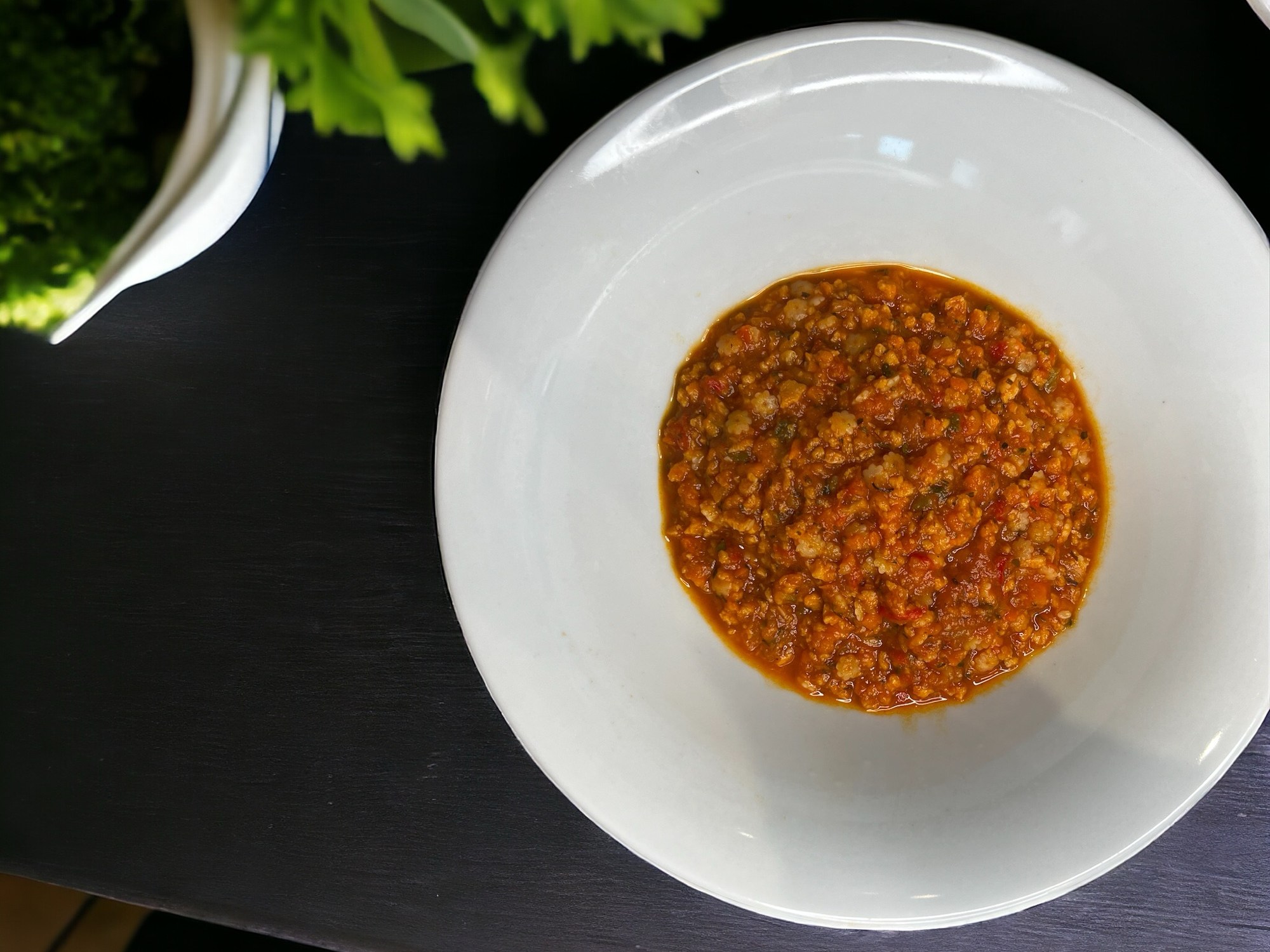 À la sonnerie, ajouter le PVT, le coulis de tomate, le bouillon de légumes. Chauffer 20 min / 100° / sens Inverse / vitesse 1 avec le gobelet sur le couvercle.