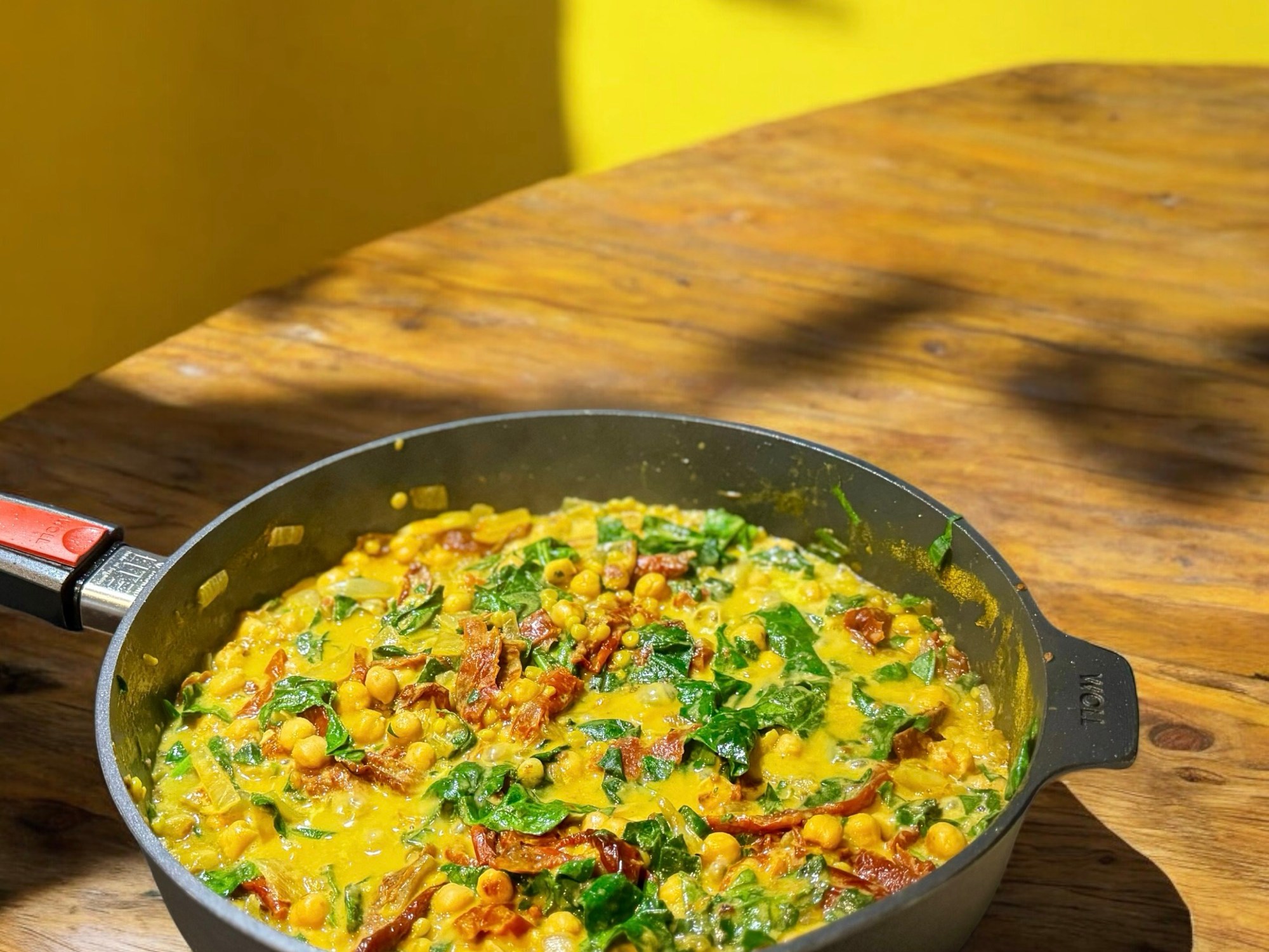 Ajouter le lait végétal et les épinards. Laisser réduire 5 minutes. Servir avec du pain.