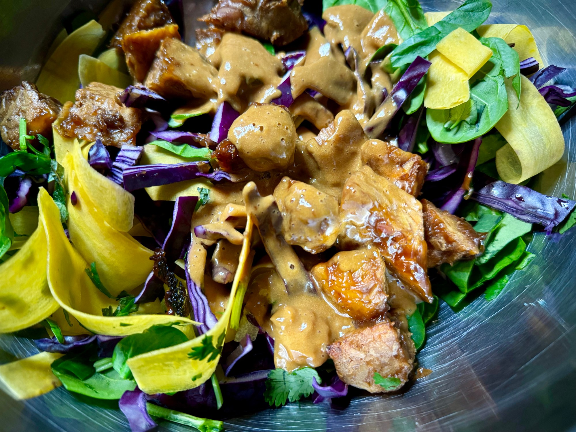 Servir avec la salade arc-en-ciel au tempeh.