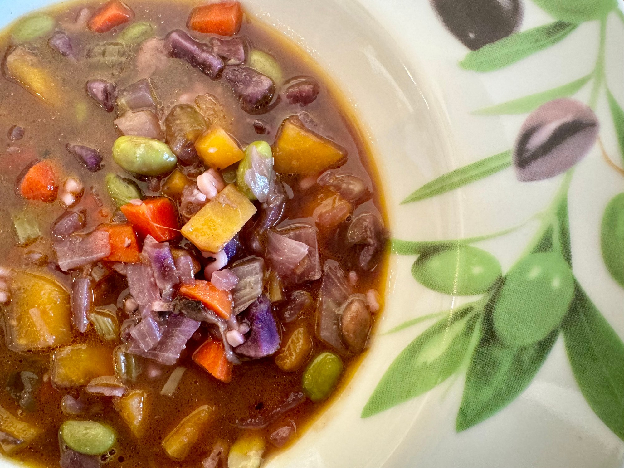 Ajouter les édamames, l’eau, le fond de légumes et le sel, puis cuire 15 min/100°C/vitesse 2.