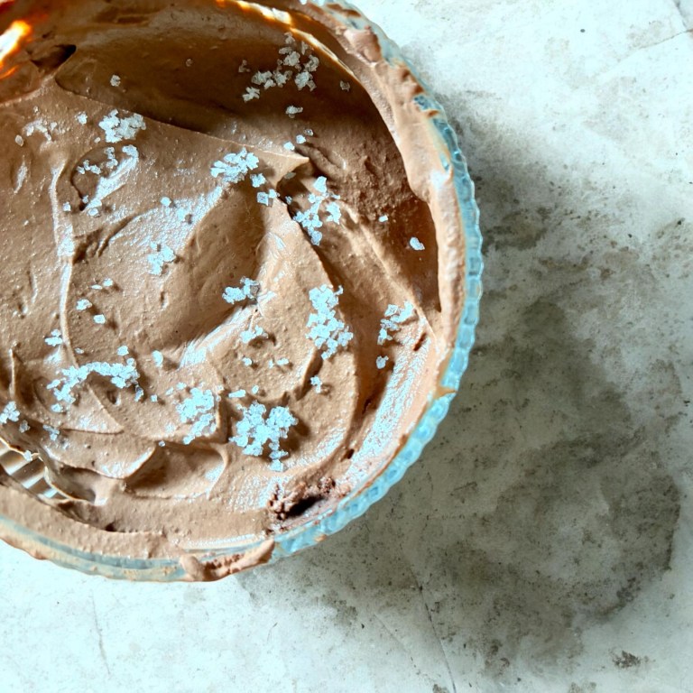 Transférer le mélange de mousse au chocolat dans deux coupes et réfrigérer pendant au moins 1 heure. Servir avec un peu de fleur de sel.