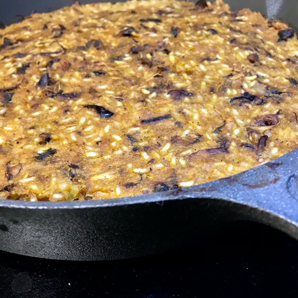 FRITATTA SANS ŒUFS AUX CHAMPIGNONS ET RISOTTO