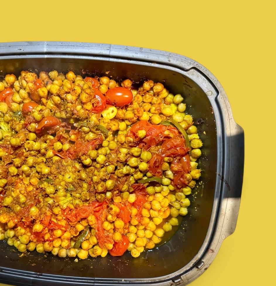TOMATES AU CURRY ET POIS CHICHES, SAUCE YOGOURT